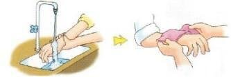 应迅速除去被污染衣服,及时用大量清水冲洗或用合适的溶剂、溶液洗涤受伤面。保持创伤面的洁净,以待医务人 员治疗。若溅入眼内,应立即用细水冲洗;如果只溅入单侧眼睛,冲洗时水流应避免流经未受伤的部位。